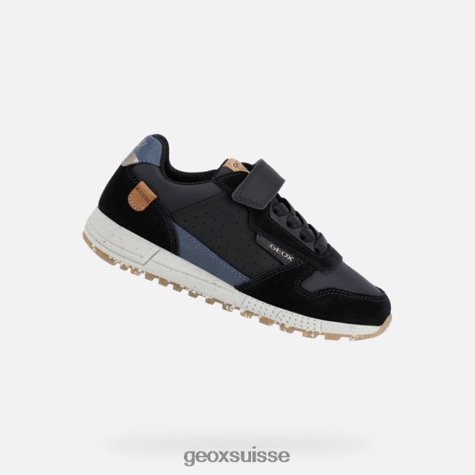 Sneaker basse de Junior avec un noyau durable et une esthétique de la bouche rétro. Produit du partenariat entre GEOX et le WWF, il a été fabriqué à partir de cuir recyclé et de nylon recyclé et est livré dans un coloris noir et nave-bleu. Souffrant, confortable et réglable, l’alben est un choix idéal pour les jours scolaires et de loisie.