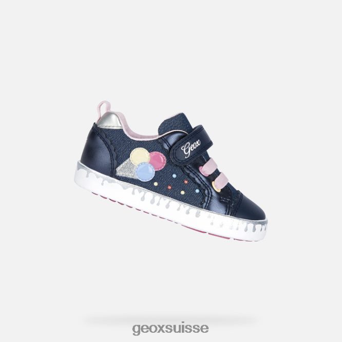 Sneaker Lower Low Cutt Light confortable pour les filles avec une esthétique amusante venteuse. La tige bleu de l’Airforce en toile à tête haute et un matériau à effet de cuir ont été embellies de conceptions d’impression estivales et de détails multicolores. Conçu pour les petits pieds qui sont constamment en mouvement, Kilwi complètera les tenues sportives avec une touche féminine.