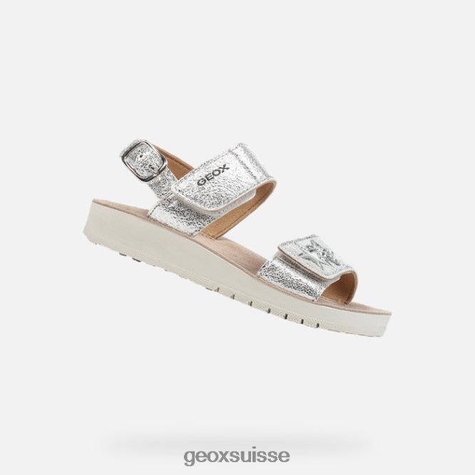 Sandale décontractée confortable de la fille qui est forcément bien adaptée à toute occasion. Choix idéal pour le confort et une sensation de bien-être, quelle que soit la situation, Costarei est une sandale à l’aspect décontracté chargé de détails tendance, comme la tige à base d’un matériau à effet de cuir métallisé en argent et les embellissements sur la sangle avant .